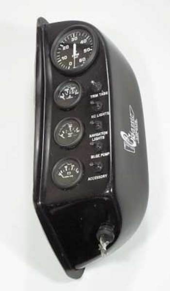 Complete Side mounting abs  Auto Instrument Panel with Wiring Harness:  Panel Includes accessory outlet and toggle switches for KC lights, bilge, power trim, navigation lights.